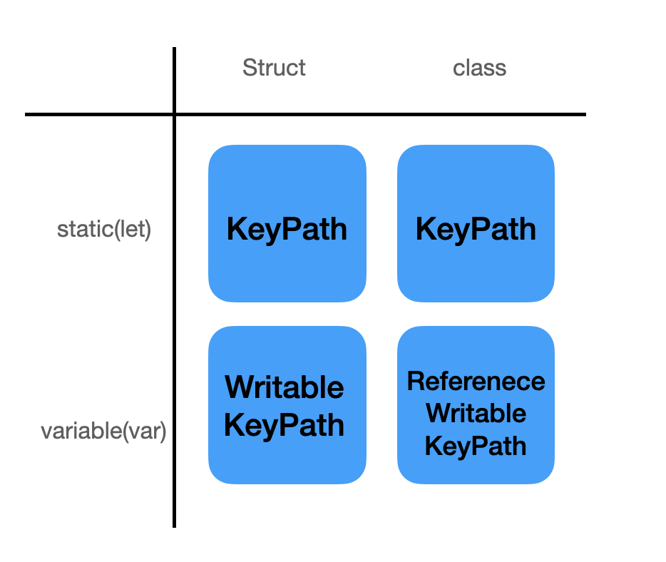 또한 KeyPath는 알고 싶은 프로퍼티에 대한 속성과 타입에 따라서 분류가 됩니다.