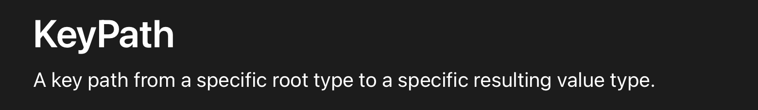 KeyPath 번역하자면 "특정 루트 유형에서 특정 결과 값 유형으로의 키 경로"